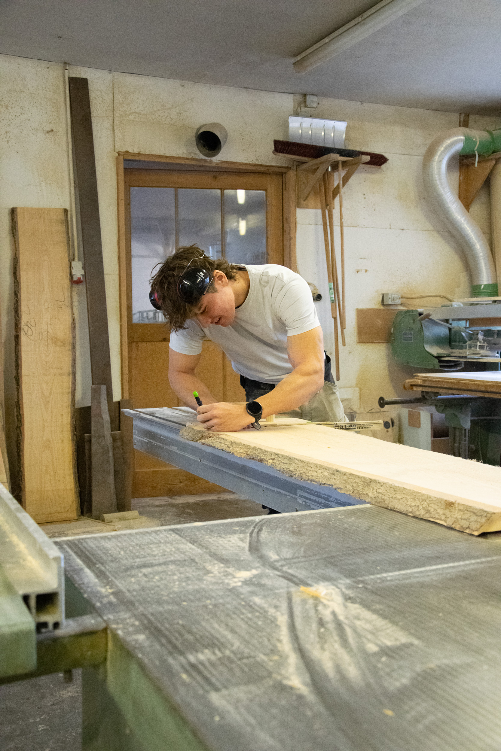 Mitten in Rosenheim arbeite ich in einer alten Schreinerei, in der schon Jahrzehnte lang Holz bearbeitet und gestaltet wird.
